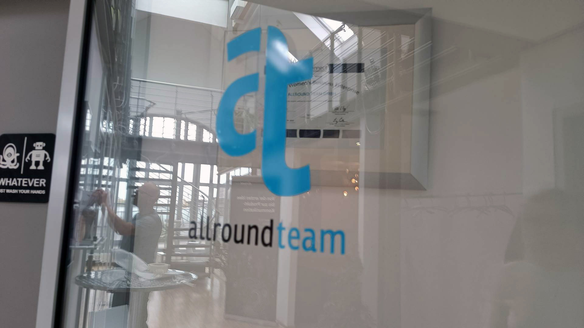 Unsere neuen Glastür-Sticker sind ein kleines, aber wirksames Statement: Wir sind stolz auf unsere Identität, wir sind kreativ und offen, und wir lieben, was wir tun. Branding ist für uns mehr als Wiedererkennung. Es ist Ausdruck, Haltung und manchmal auch ein Augenzwinkern. Wir nehmen es ernst – aber nie ohne Herz.